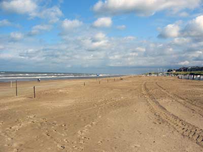 06.09.2008 Am Morgen schaute die Sonne noch zwischen den Wolken hervor. So sind wir mit den Fahrrädern nach Katwijk und zum Strand aufgebrochen. Katwijk hat einen schier unendlichen langen Strand. Man sieht in beide Richtungen unendlich weit nur Strand. Im Süden kann man am Horizont die Silhouette von Schewenigen sehen. Leider war es zum Baden zu kalt. Schade, gerade hier hatte ich mir schönes Wetter erhofft. Doch die Wolken wurden immer dichter. Wir haben es dann in der Stadt knapp geschafft eine Portion Kibbeling zu essen, bevor wieder der Regen kam.
